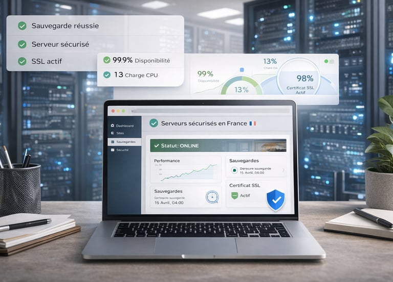 Nous hébergeons votre site sur une infrastructure stable et rapide pour garantir un chargement fluide sur tous les écrans.